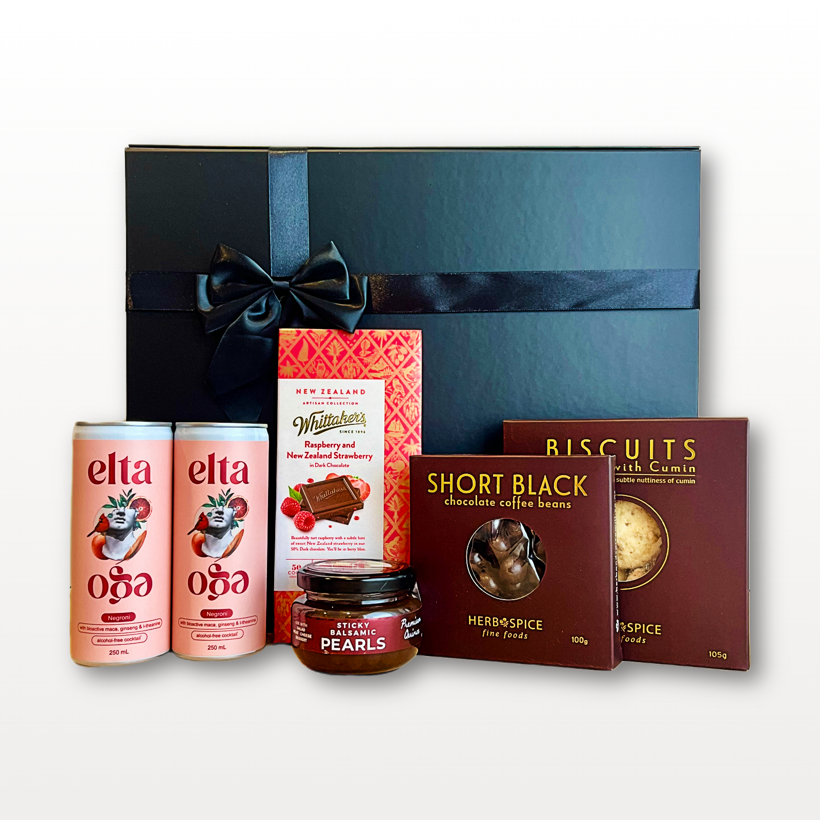 Each The Velvet Box alcohol-free luxury gift hamper in NZr is carefully packed with tissue paper and/or wood fill to ensure it arrives safely and beautifully presented. Gift boxes are available in both black and white, and your order may arrive in either option depending on stock availability. If an item included in your selected gift box is temporarily out of stock, it will be thoughtfully substituted with a product of equal or greater value that complements the style and theme of the box. We offer reliable alcohol-free luxury gift hamper delivery throughout New Zealand, making it easy to send refined indulgence wherever it’s needed.