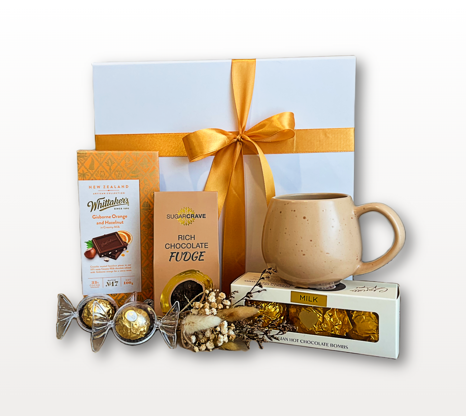 Chocolate Gift Box NZ – Chocoholic is a richly indulgent collection created for those who believe chocolate is more than a treat — it’s comfort, joy, and celebration in its purest form. Thoughtfully curated to delight the senses, this chocolate gift box NZ brings together luxurious chocolate desserts, cosy drinkware, and elegant finishing touches to create a truly comforting gifting experience.